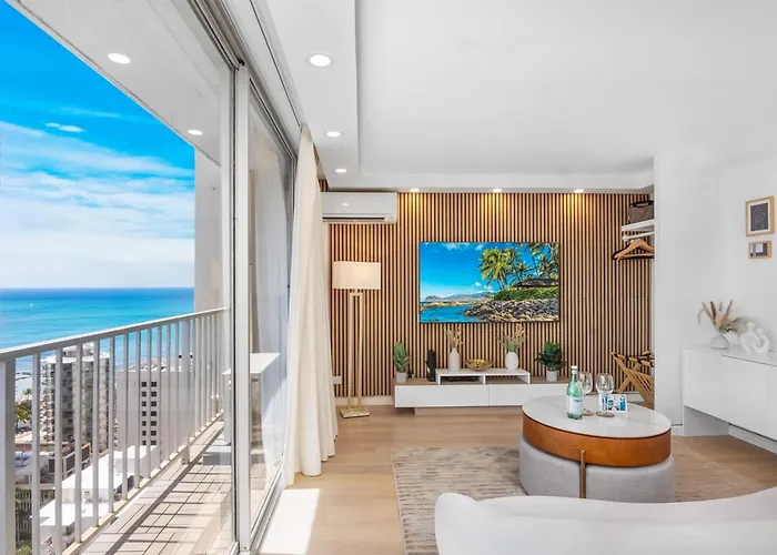 寝室1室のホノルルOcean Retreat: Remodeled Pacific Monarch Havenアパートメントは海の景色を見渡せる場所にあり、モアナ・サーフライダー・ウェスティン・リゾート&スパから歩いて5分の場所にあります。 アラワイ運河からたった1.6kmで、37m²のアパートはホノルル動物園すぐ近くです。